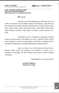 A delação premiada do dono da empresa 3M foi informada nesta sexta-feira (18) pela promotora de Justiça de Sidrolândia, Bianka Machado Arruda Mendes, em ofício encaminhado ao juiz Fernando Moreira Freitas da Silva, da Vara Criminal. No comunicado ao magistrado, a promotora pede que ele marque nova audiência de instrução para ouvir o delator. Além dele, o Ministério Público Estadual pede para que os outros réus da 1ª fase da Operação Tromper sejam ouvidos novamente.