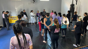 “A defesa pessoal não é só sobre saber se proteger fisicamente. É também sobre reconhecer seu valor, fortalecer a autoestima e saber que você tem o direito de viver com respeito e segurança”, destacou a instrutora Thaysedurante a aula.