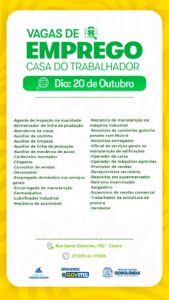 A Casa do Trabalhador de Sidrolândia divulgou nesta segunda-feira (20) um total de 30 vagas de emprego disponíveis no município. As oportunidades abrangem diferentes áreas e níveis de escolaridade.