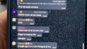 De acordo com as conversas trocadas por membros do grupo, alguns participantes chegaram a orientar o motociclista a “ir pro Paraguai e “deixar o moto entocada e depois mudar a roupa dela”. Outros deram apoio ao jovem dizendo que ‘daria tudo certo e para ele ficar de boa, na calada’.