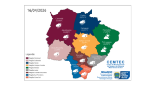 A previsão do tempo para esta quinta-feira (16) indica possibilidade de chuvas e tempestades em diversas regiões de Mato Grosso do Sul. De acordo com o Cemtec (Centro de Monitoramento do Tempo e do Clima), a instabilidade climática é provocada pela atuação de um centro de baixa pressão atmosférica originado no nordeste da Argentina.