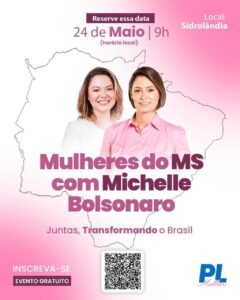 Durante o encontro, a presidente nacional do PL Mulheres dará posse a presidente estadual do PL Mulher MS, Naiane Bittencourt, e a sua vice, Mariana Amaral. O evento está marcado para às 9h e deve terminar às 13h. Ainda não há informações sobre o local.