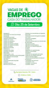 Está precisando de um emprego e não sabe onde procurar? Nesta quinta-feira (25), a Casa do Trabalhador está com 50 vagas de emprego abertas em Sidrolândia.