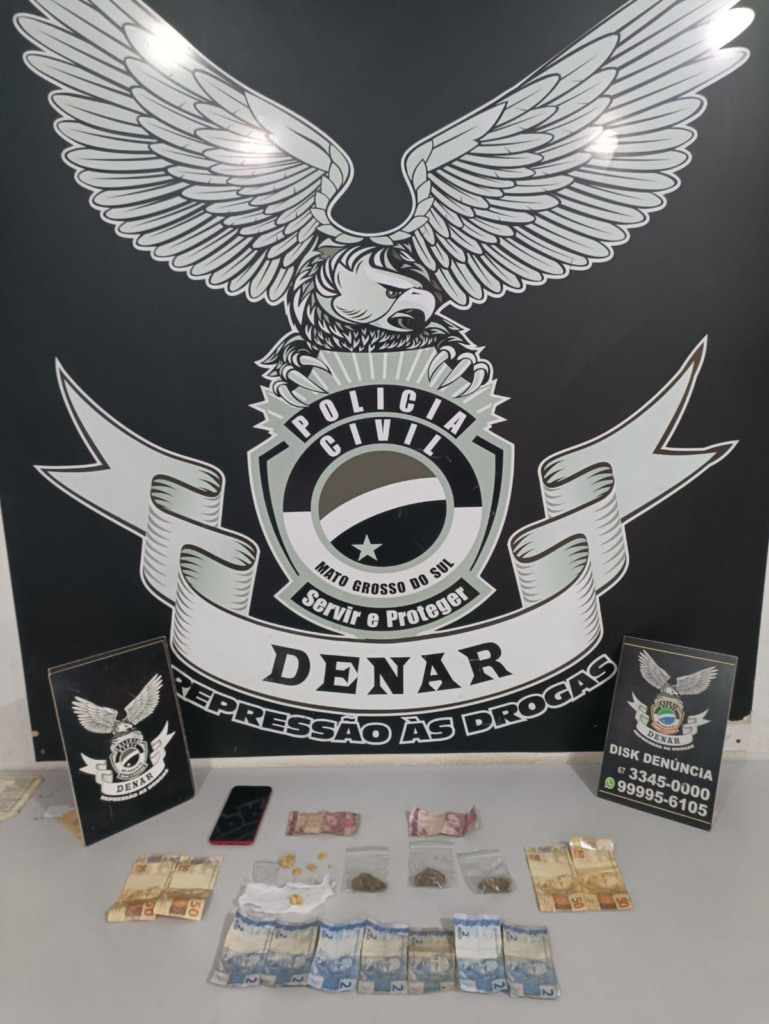A Polícia Civil prendeu nesta quarta-feira, 08/11, três pessoas responsáveis por vender drogas no canteiro central, em frente a um bar, na Vila Palmira, em Campo Grande-MS. A prisão foi feita por equipes da DENAR (Delegacia Especializada de Repressão ao Narcotráfico).