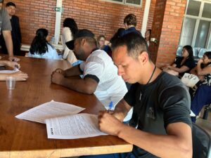 A assinatura ocorreu no Sindicato Rural, com a presença do prefeito Rodrigo Basso, da vice-prefeita Cristina Fiuza, representantes da Caixa, Agehab, Fundação Indígena, além dos caciques Daniel e Jasiel, da arquiteta Fernanda Lima (CHAT) e da presidente da associação ADV, Sonia Volf.