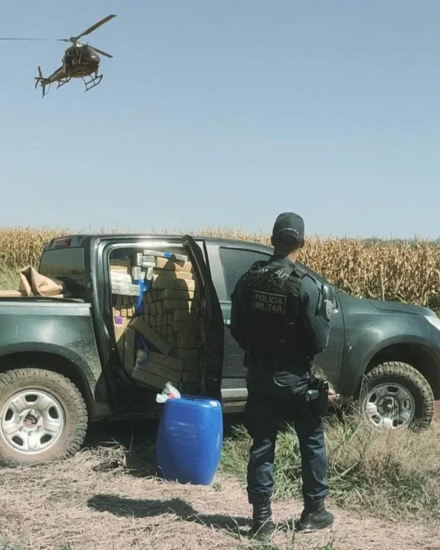 Nessa quarta-feira (16) policiais militares da Primeira Companhia Independente de Polícia Militar de Bonito, receberam uma informação acerca de uma camionete S10 de cor preta trafegando com pneu furado, de modo que adentrara no meio da plantação de milho.